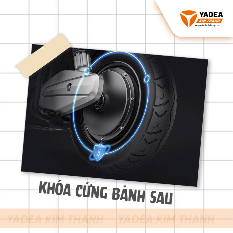 Khác với các mẫu xe thông thường, xe điện YADEA được trang bị động cơ đặt trực tiếp tại bánh sau. Nhờ vậy, khi bật chế độ chống trộm, xe có thể ngắt hoạt động ngay tại động cơ. Khiến bánh xe bị khóa cứng hoàn toàn, không thể dắt hay di chuyển dù chỉ một bước.